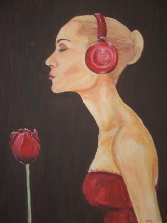 Blondine mit Tulpe